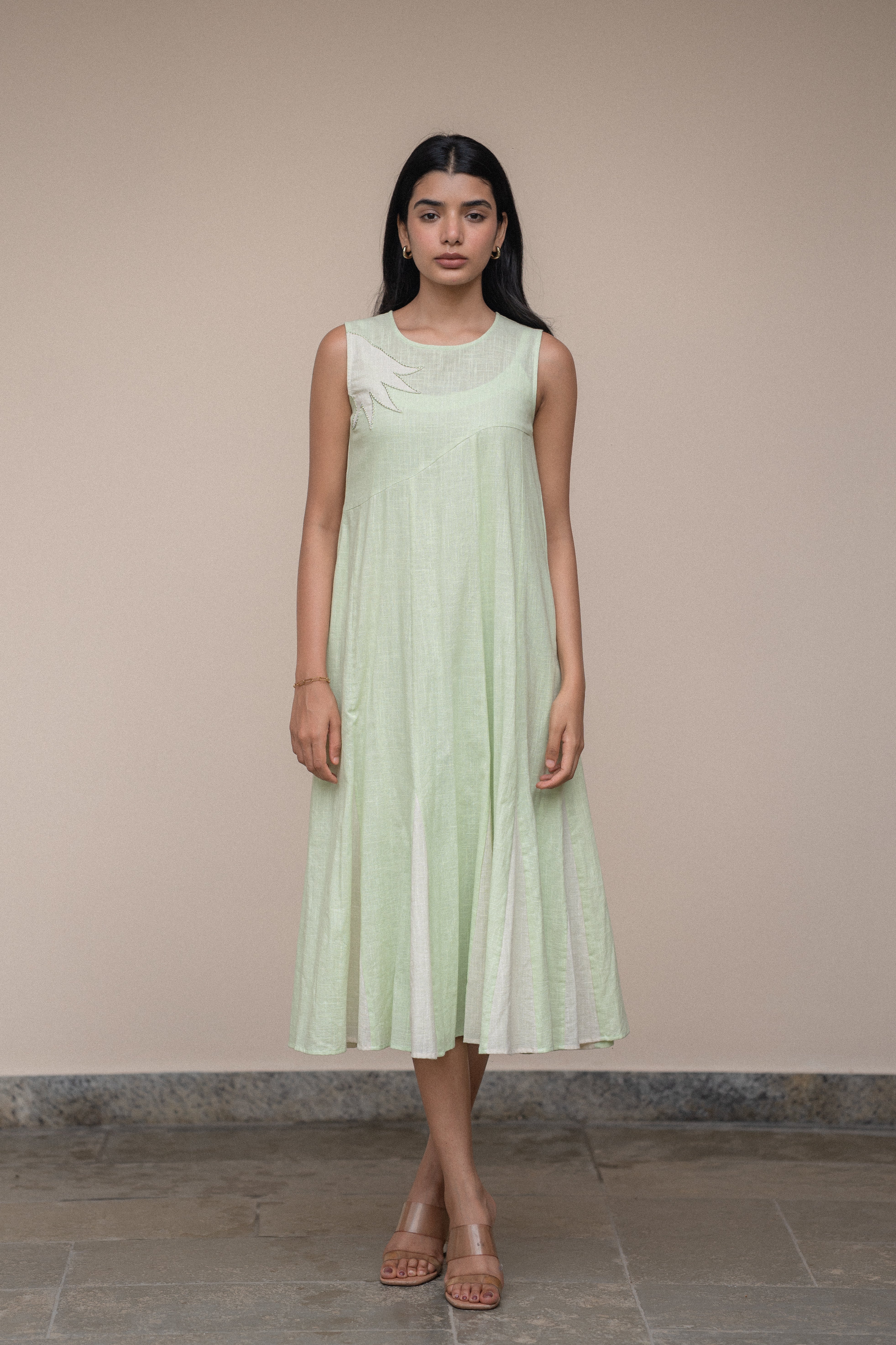 Step into effortless elegance with our Mint Panel Dress – a breezy, sleeveless silhouette crafted in soft cotton. Featuring delicate appliqué detailing on the collar, paneled design, this dress comes with a separate slip for added comfort and coverage.